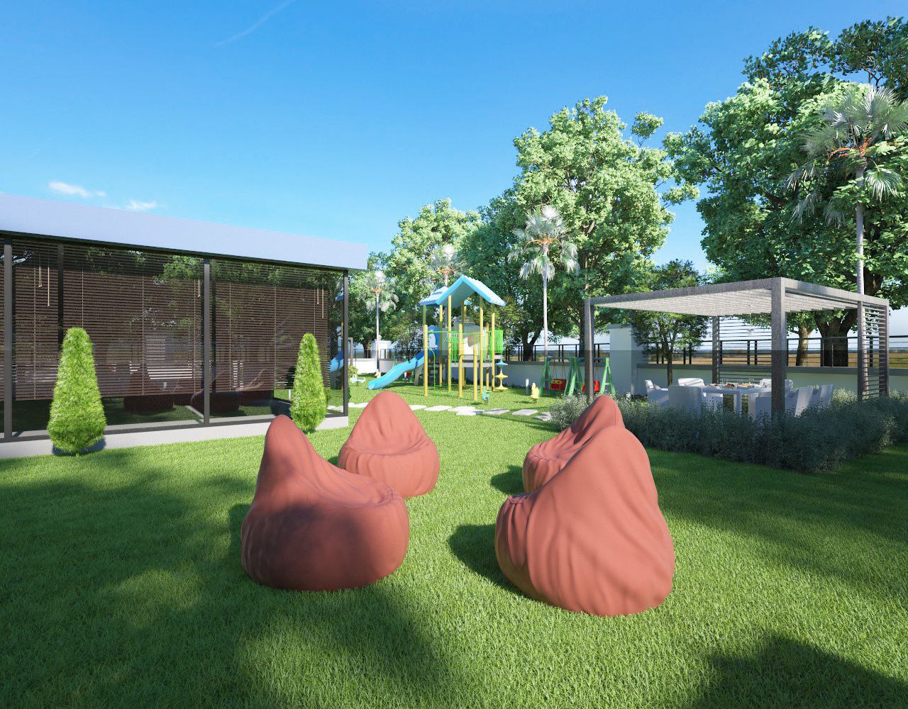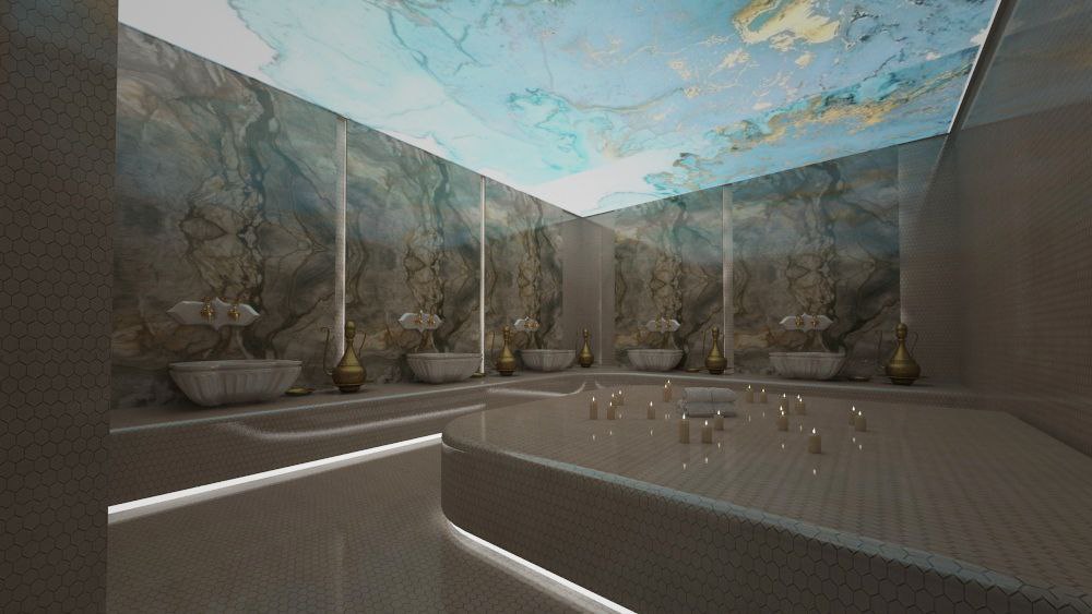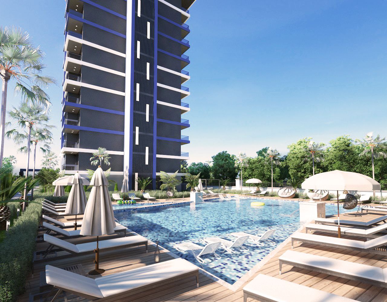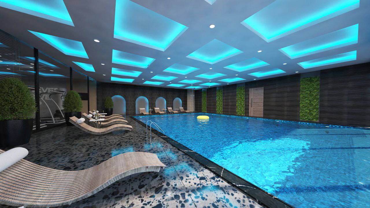 Свой пляж, шезлонги, зонтики, два бассейна, открытый и закрытый, сауна, турецкая баня хамам, тренажерный зал, зона отдыха, детская площадка, детская комната отдыха, подземный паркинг, гостевой паркинг.